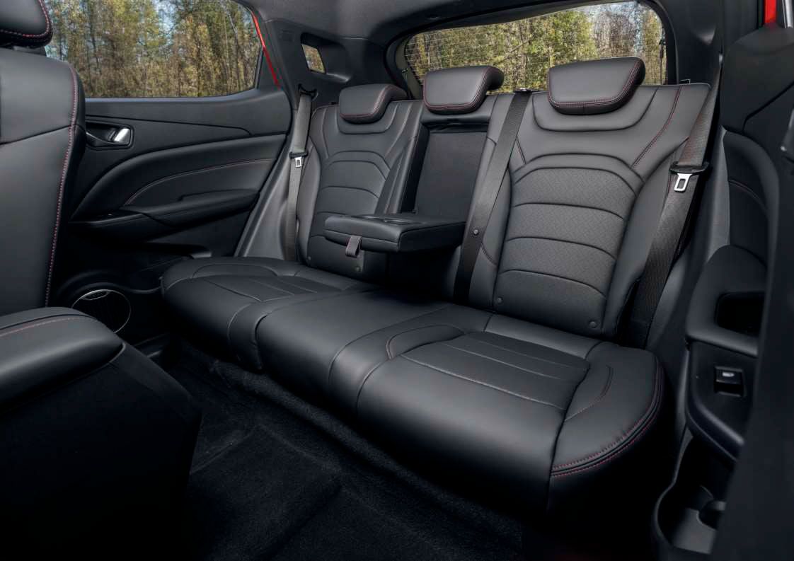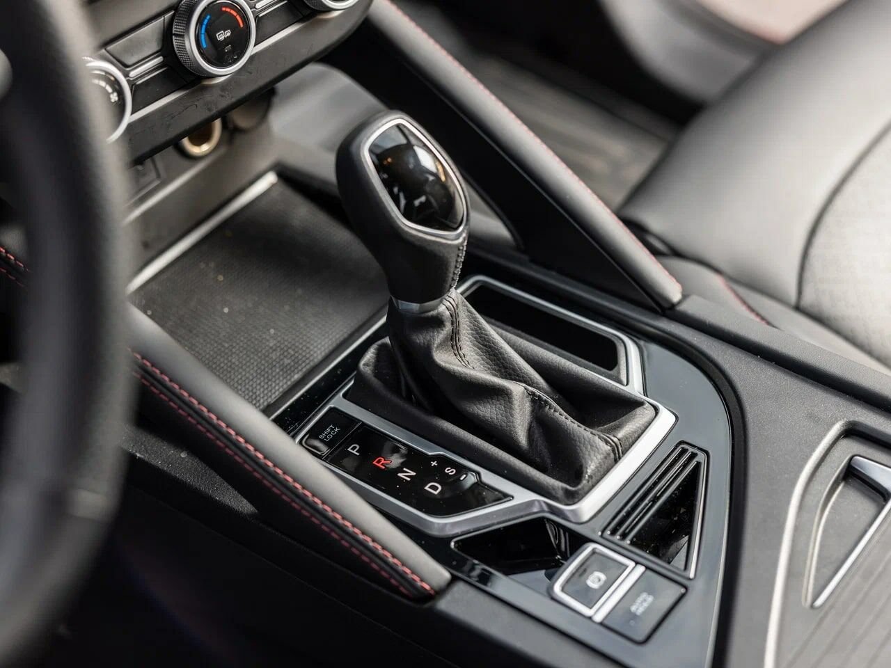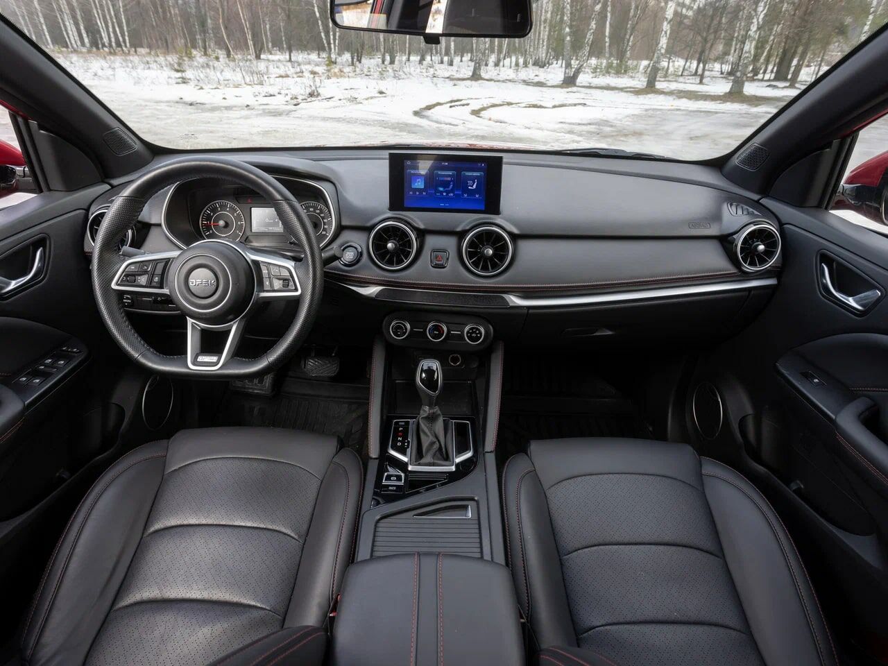Отделка сидений эко-кожей, черная с красной прострочкой